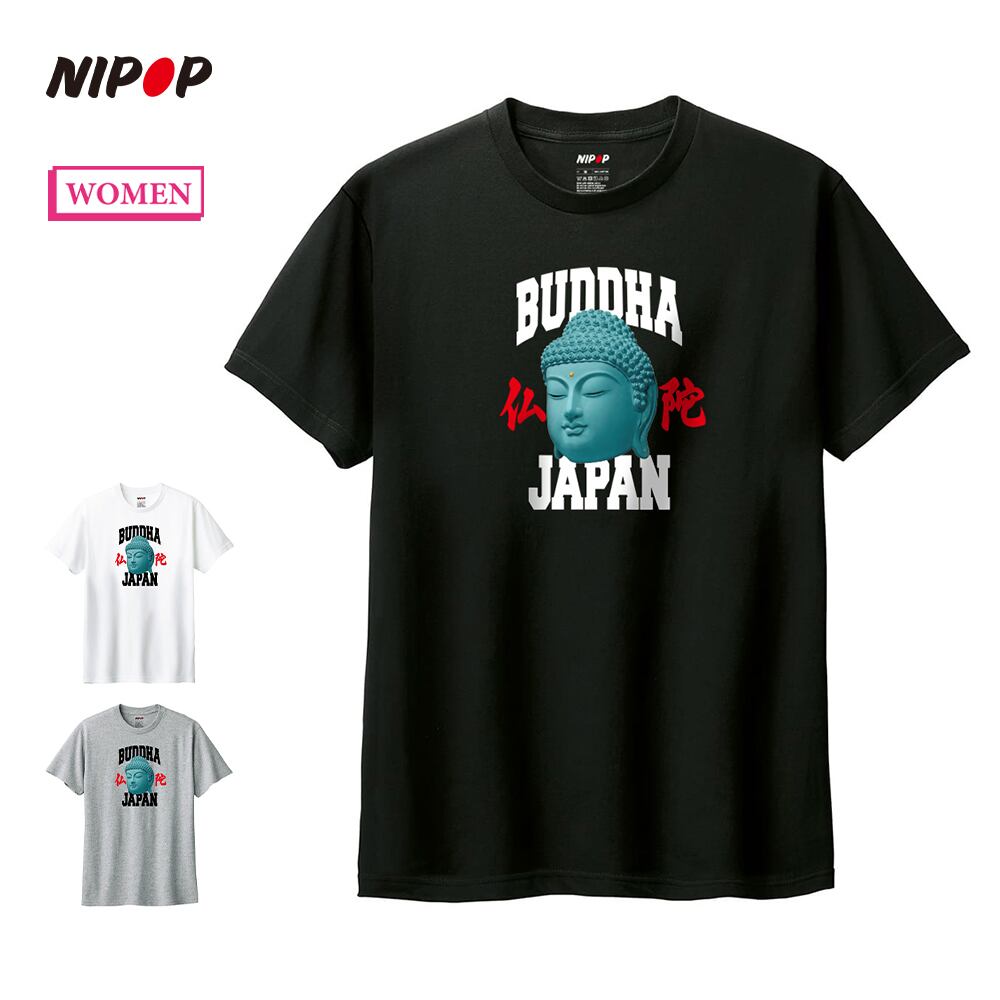 NIPOP(ニポップ) 半袖Tシャツ 仏陀 和 ロゴ イラスト プリント インバウンド お土産 トップス カットソー レディース