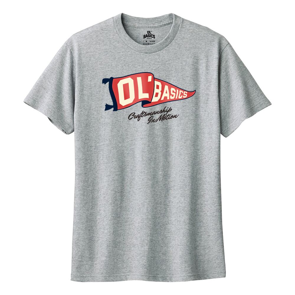 【OL'BASICS】のロゴをフラッグ(旗)イラストにプリントした、