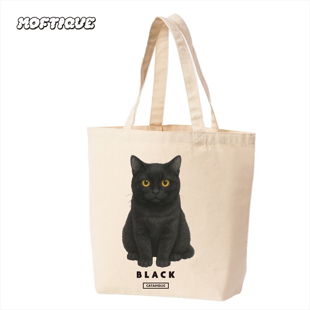 Moftique(モフティック) トートバッグ キャンバス マチ有 生成り 黒猫 猫 アニマルプリント Lサイズ ユニセックス