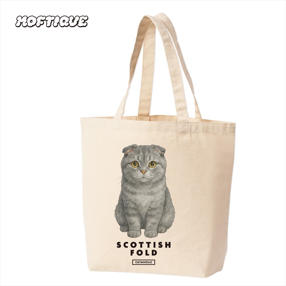 Moftique(モフティック) トートバッグ キャンバス マチ有 スコティッシュフォールド 猫 アニマルプリント Sサイズ ユニセックス