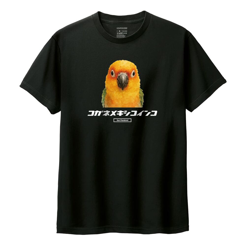 愛らしいコガネメキシコインコが目を惹くアニマルプリントTシャツ。