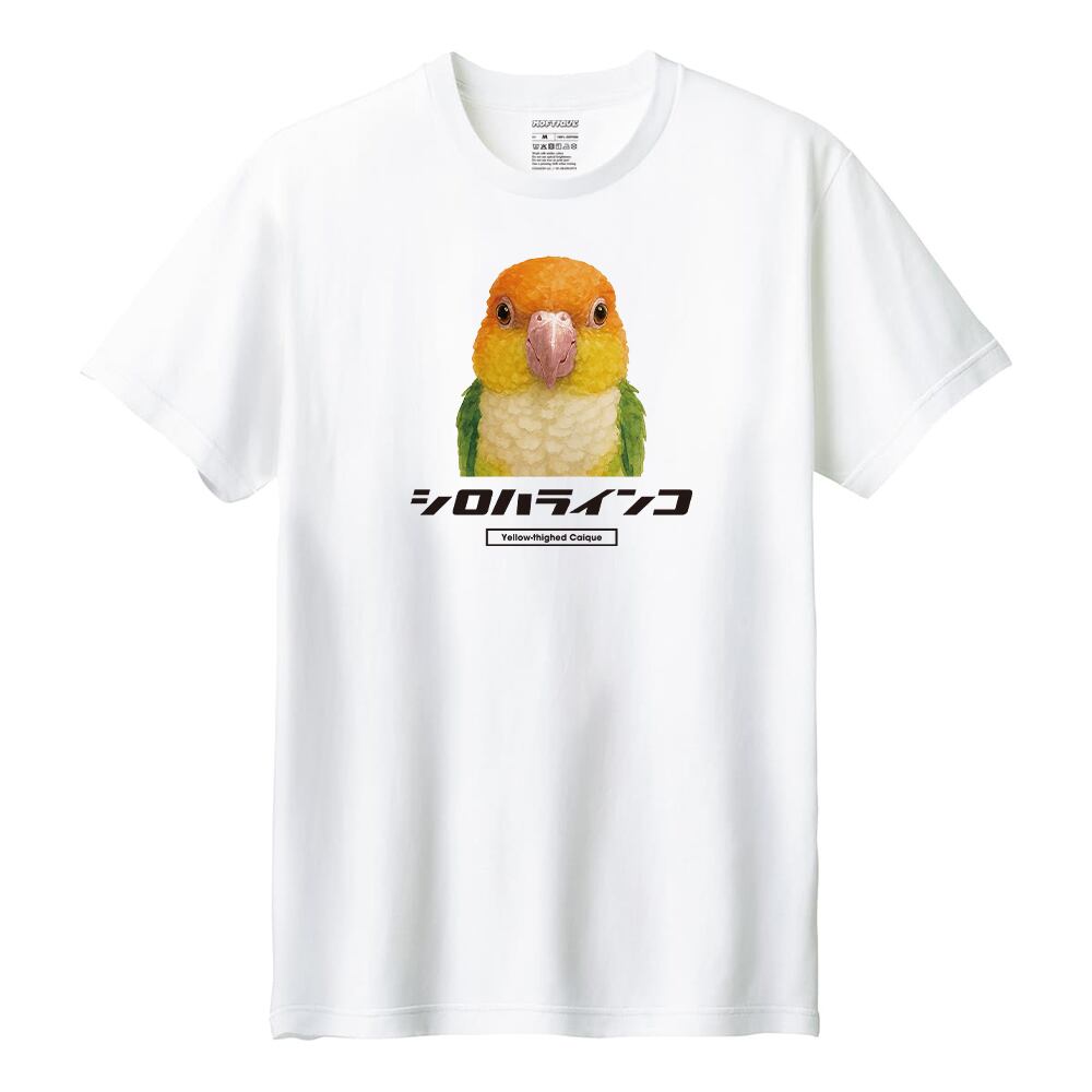 愛らしいシロハラインコが目を惹くアニマルプリントTシャツ。