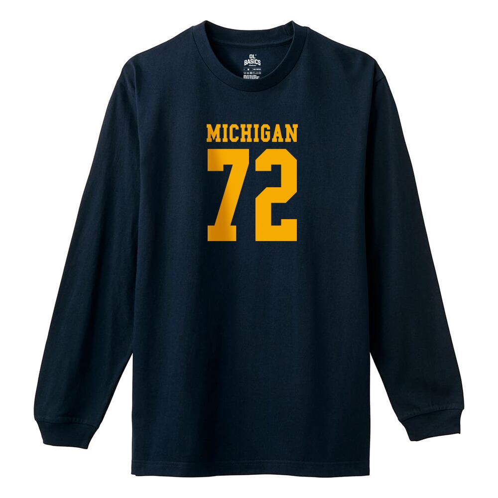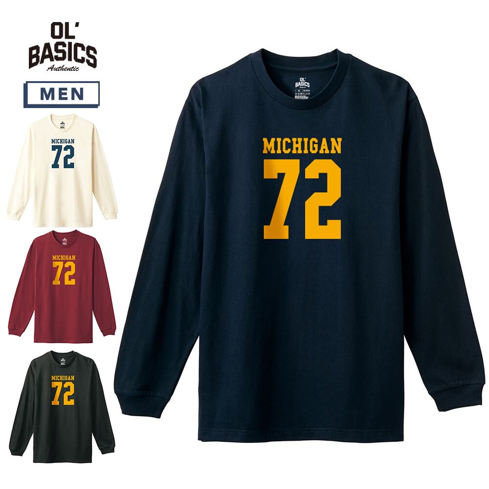 Ol' Basics(オール・ベーシックス) 長袖Tシャツ MICHIGAN ロゴ ナンバリング プリント 袖リブ ロンT トップス カットソー メンズ ユニセックス