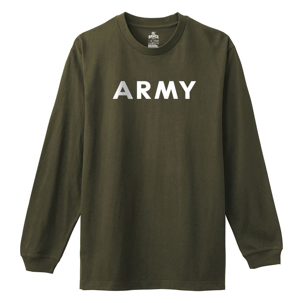 Ol' Basics(オール・ベーシックス) 長袖Tシャツ ARMY アーミー ミリタリー ロゴ プリント 袖リブ ロンT ロングTシャツ トップス カットソー メンズ ユニセックス