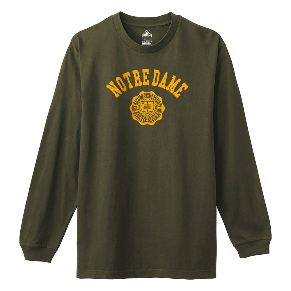Ol' Basics(オール・ベーシックス) 長袖Tシャツ NOTREDAME ロゴ カレッジロゴ プリント 袖リブ ロンT ロングTシャツ トップス カットソー レディース