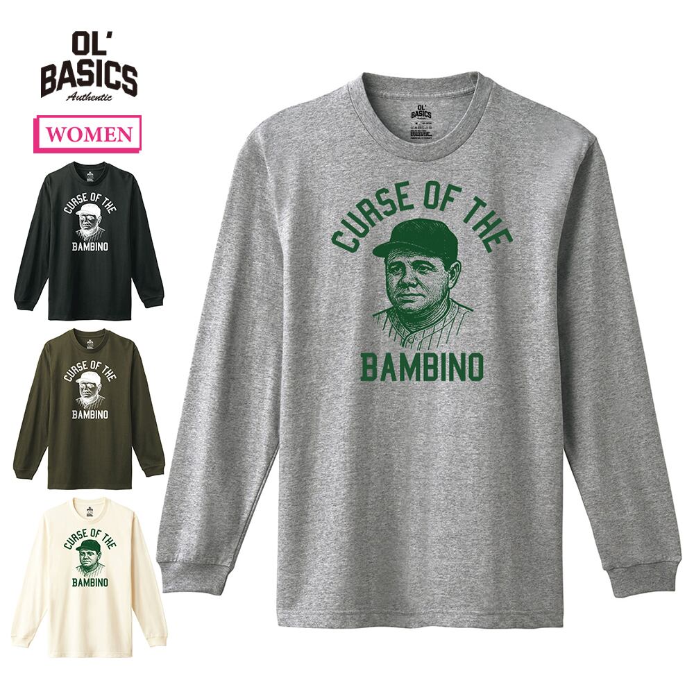 Ol' Basics(オール・ベーシックス) 長袖Tシャツ ロゴ イラスト プリント 袖リブ ロンT ロングTシャツ トップス カットソー レディース