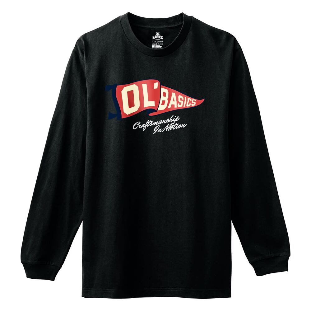Ol' Basics(オール・ベーシックス) 長袖Tシャツ フラッグ ロゴ イラスト プリント 袖リブ ロンT ロングTシャツ トップス カットソー レディース