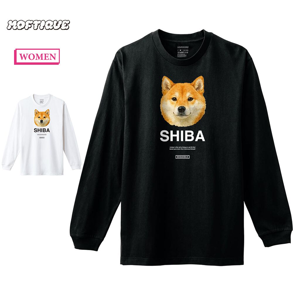 Moftique(モフティック) 長袖Tシャツ 柴犬 犬 ドッグ ペット アニマル プリント 袖リブ ロンT トップス レディース