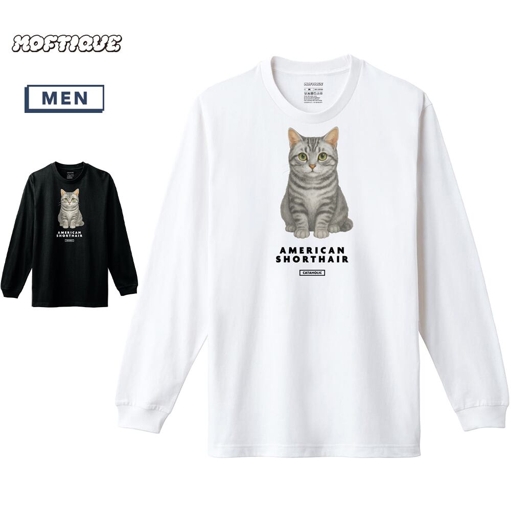 Moftique(モフティック) 長袖Tシャツ アメリカンショートヘアー 猫 キャット ペット アニマル プリント 袖リブ ロンT トップス メンズ ユニセックス