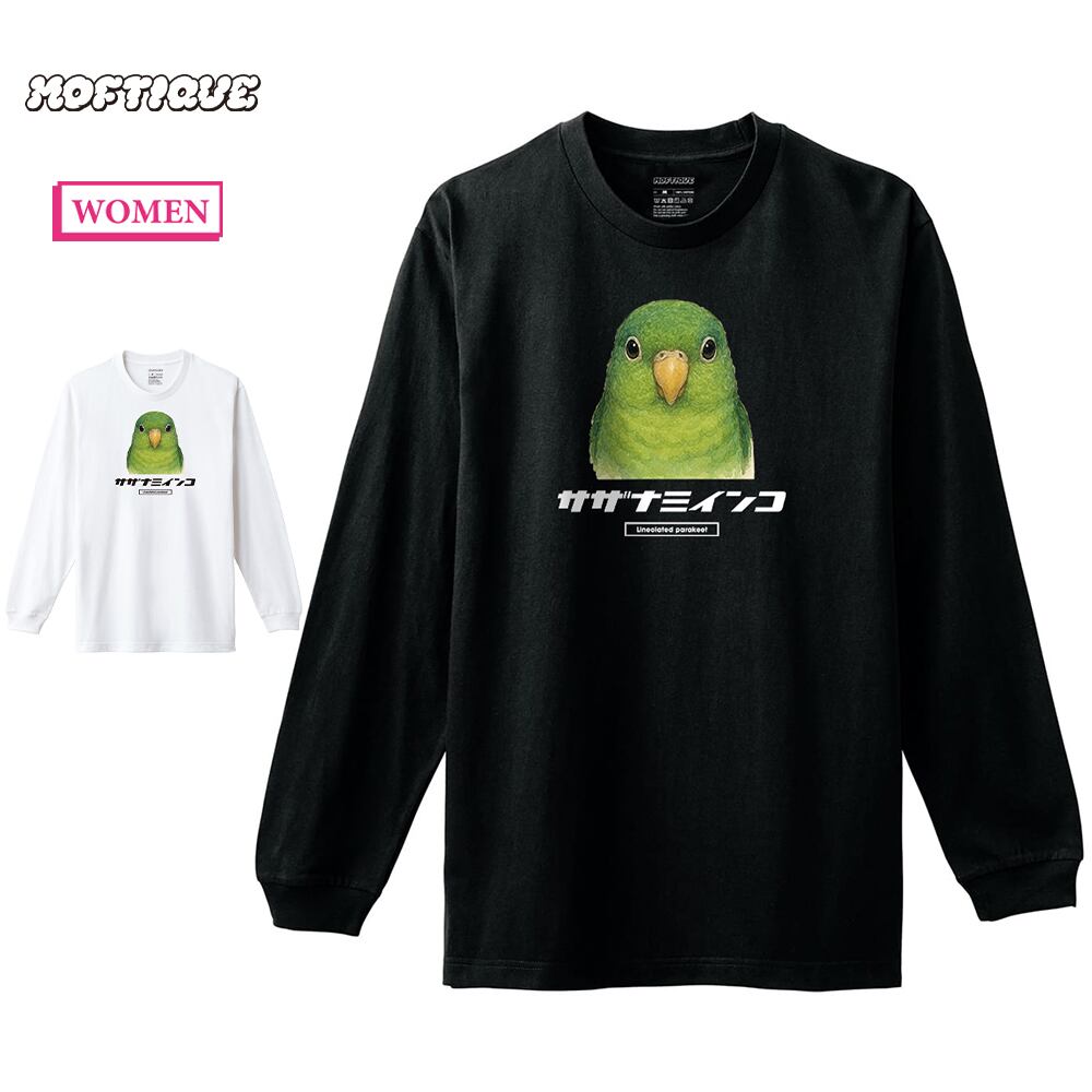 Moftique(モフティック) 長袖Tシャツ サザナミインコ インコ 鳥 ペット アニマル プリント 袖リブ ロンT トップス レディース