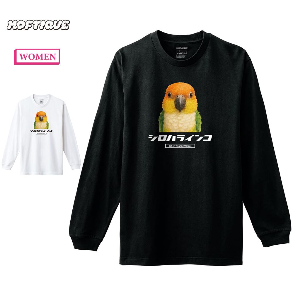 Moftique(モフティック) 長袖Tシャツ シロハラインコ インコ 鳥 ペット アニマル プリント 袖リブ ロンT トップス レディース