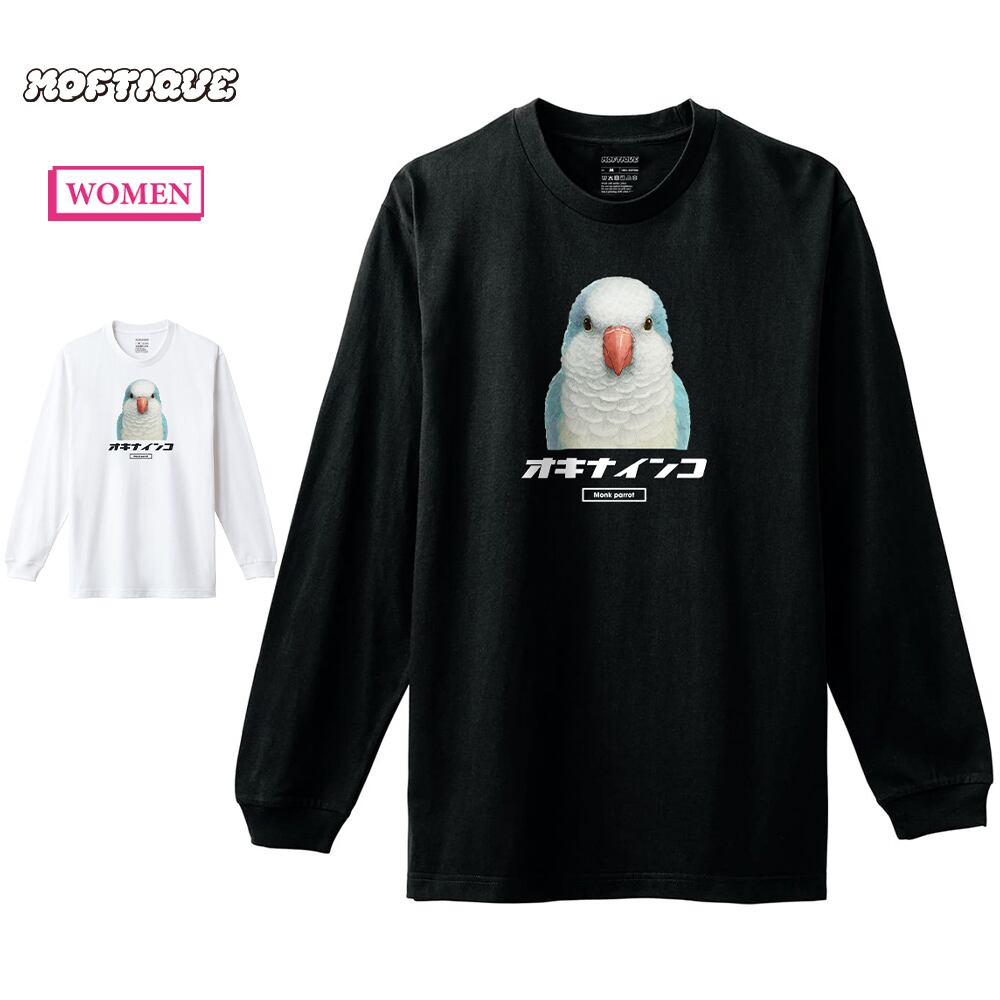 Moftique(モフティック) 長袖Tシャツ オキナインコ インコ 鳥 ペット アニマル プリント 袖リブ ロンT トップス レディース
