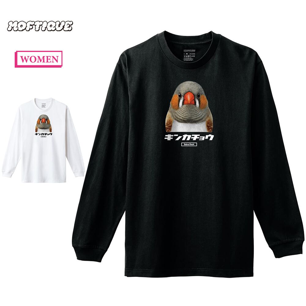 Moftique(モフティック) 長袖Tシャツ キンカチョウ 鳥 ペット アニマル プリント 袖リブ ロンT レディース