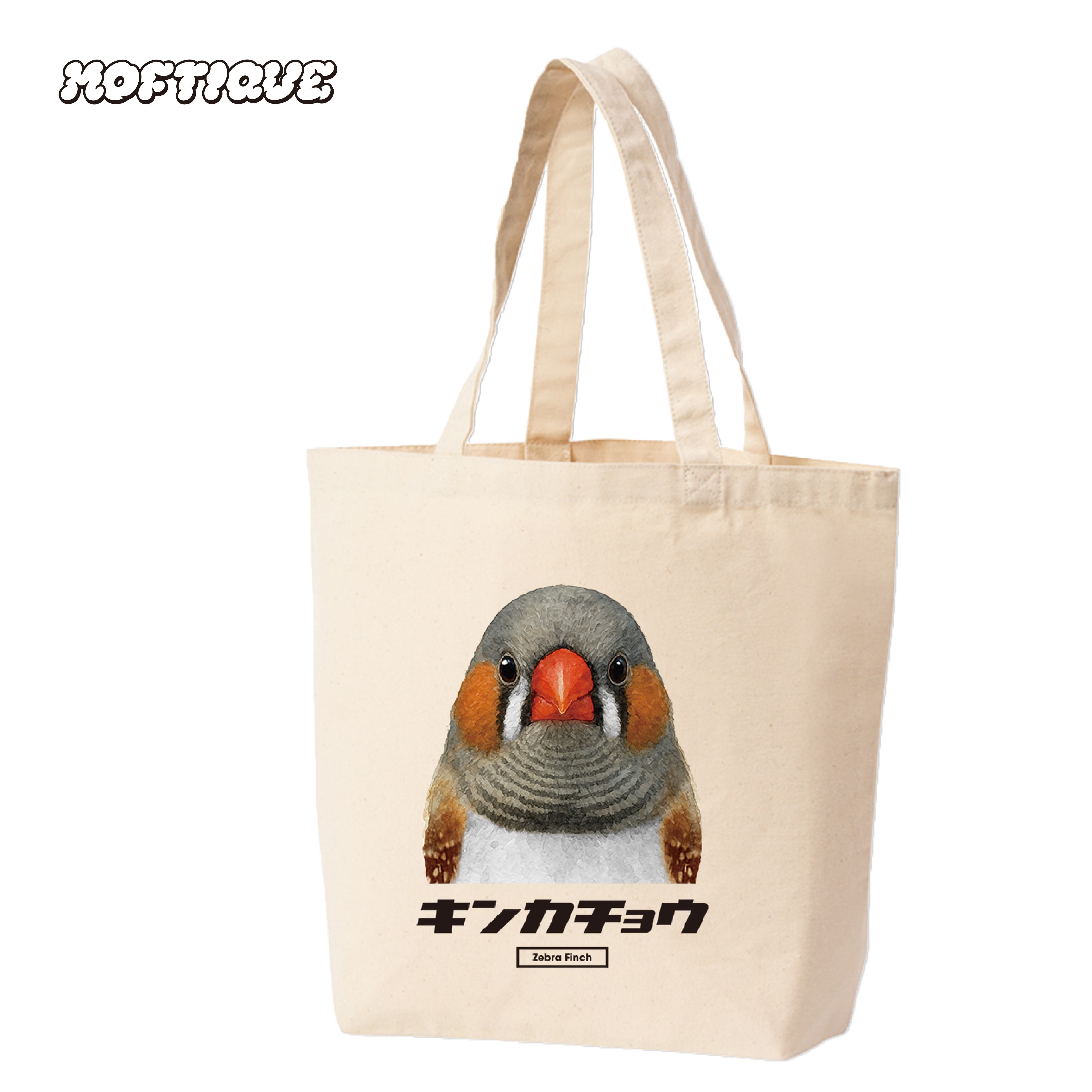 Moftique(モフティック) トートバッグ キャンバス マチ有 キンカチョウ 鳥 ペット アニマル プリント SMサイズ ユニセックス