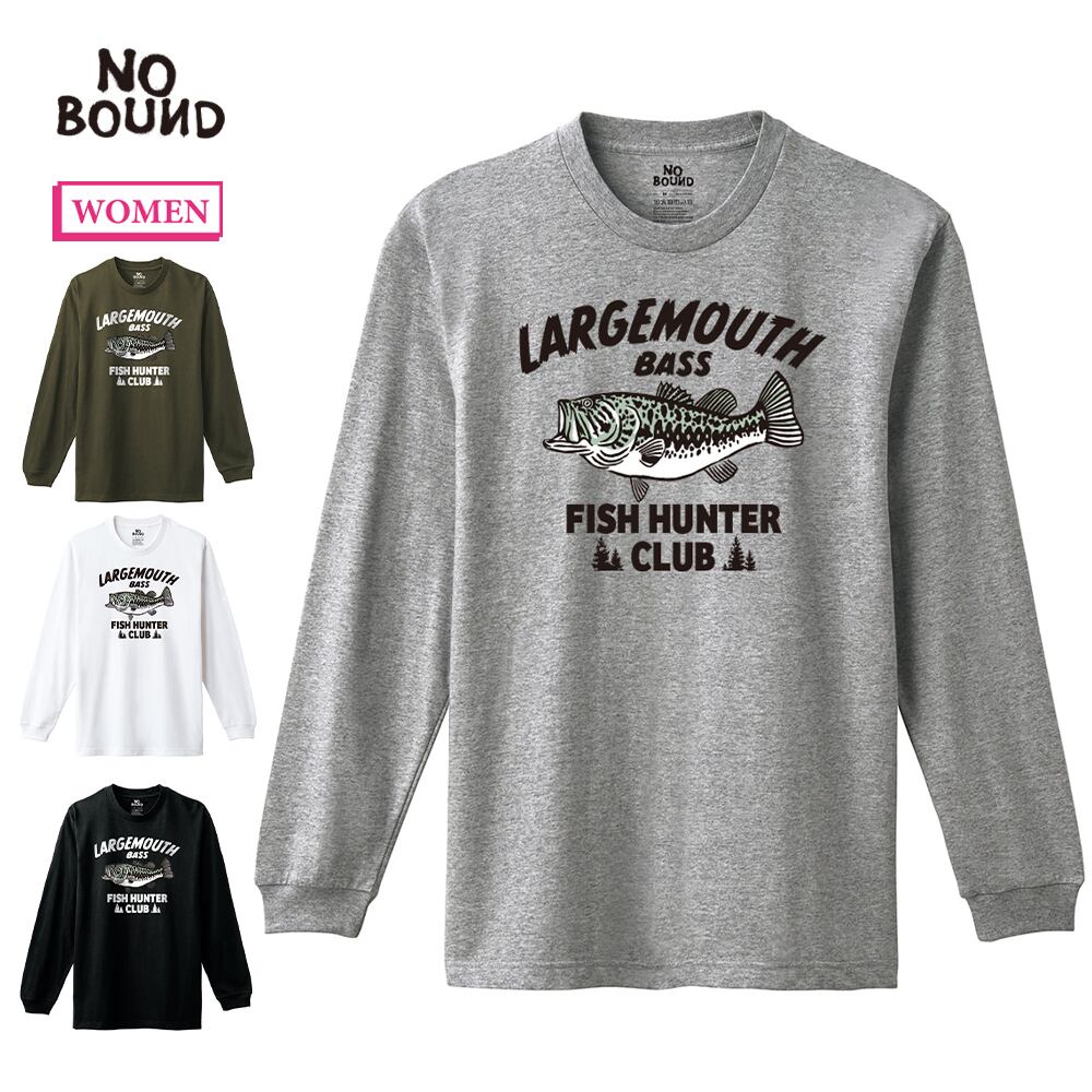 NOBOUND(ノーバウンド) 長袖Tシャツ バスイラスト フィッシング プリント レギュラーシルエット ロンT トップス カットソー レディース