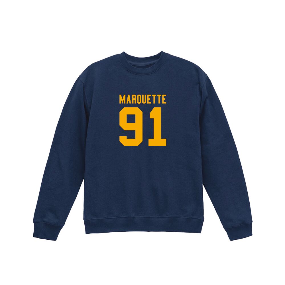 都市名の【MARQUETTE】ロゴとナンバリングをプリントした、