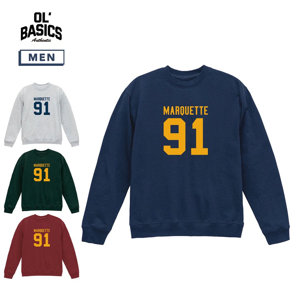 Ol' Basics(オール・ベーシックス) トレーナー スウェット MARQUETTE ロゴ ナンバリング プリント 裏毛 トップス メンズ ユニセックス