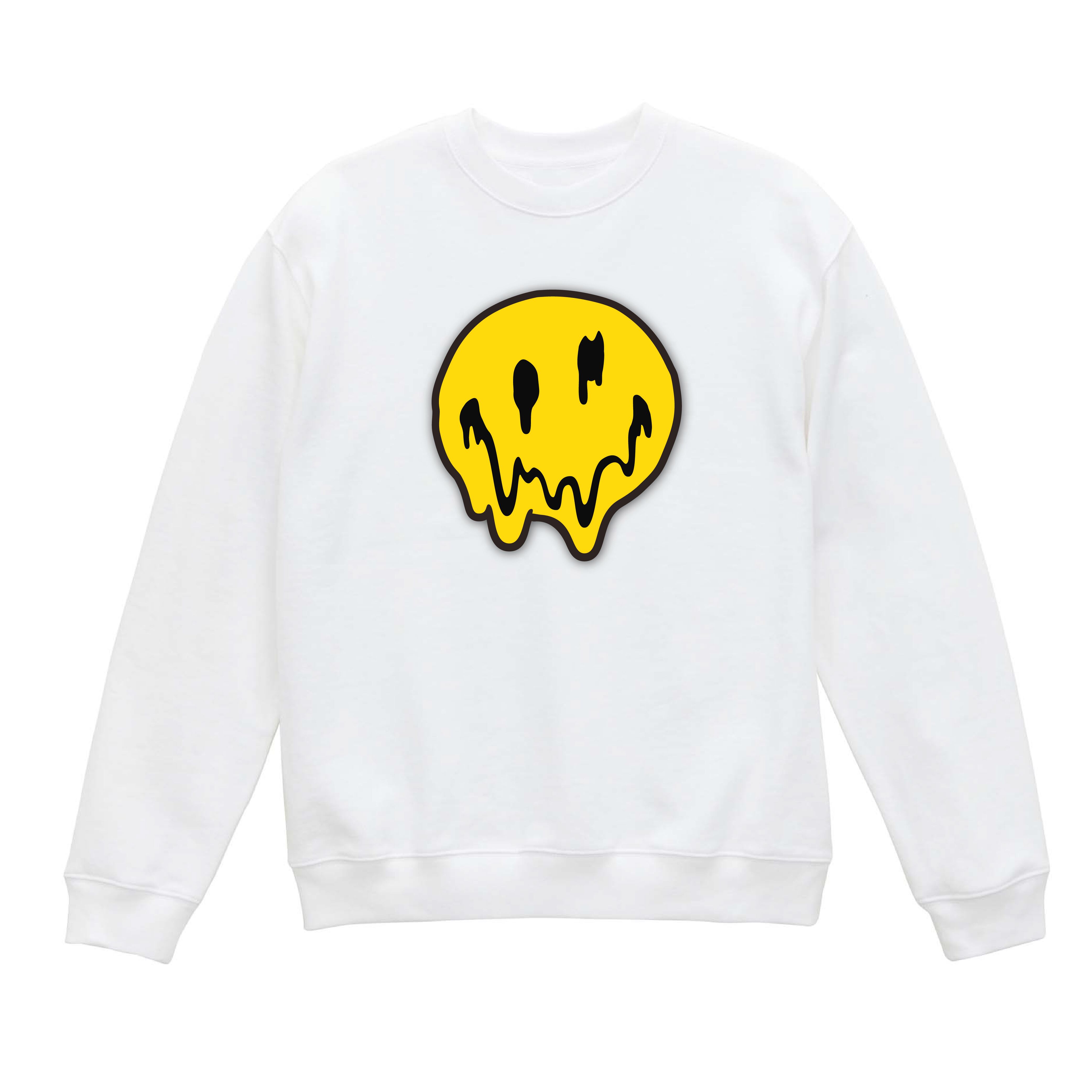 ・溶けかけた顔のイラストが映えるプリントデザインのスエットトレーナー