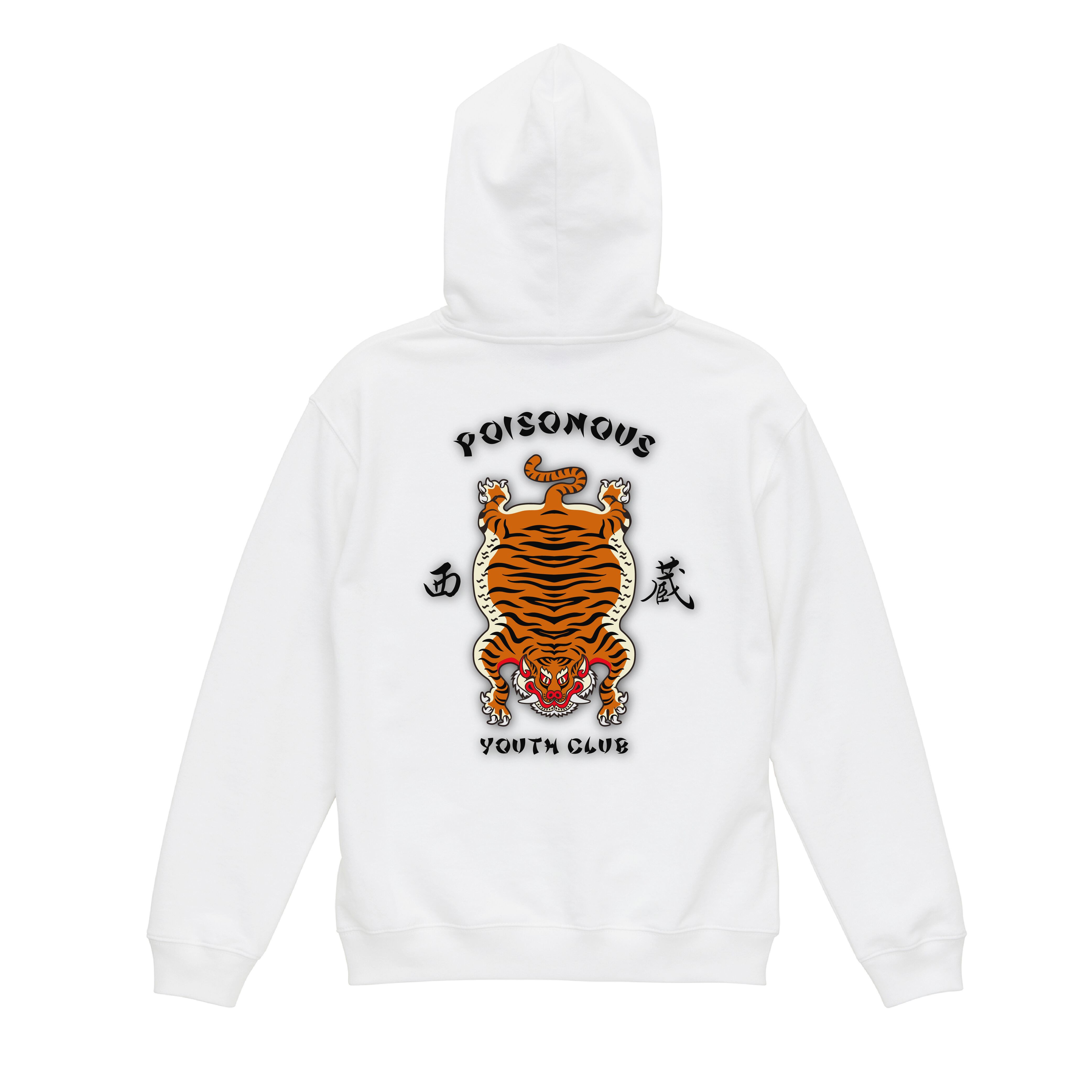 チベタンタイガー バックプリント 裏パイル プルオーバーパーカー。