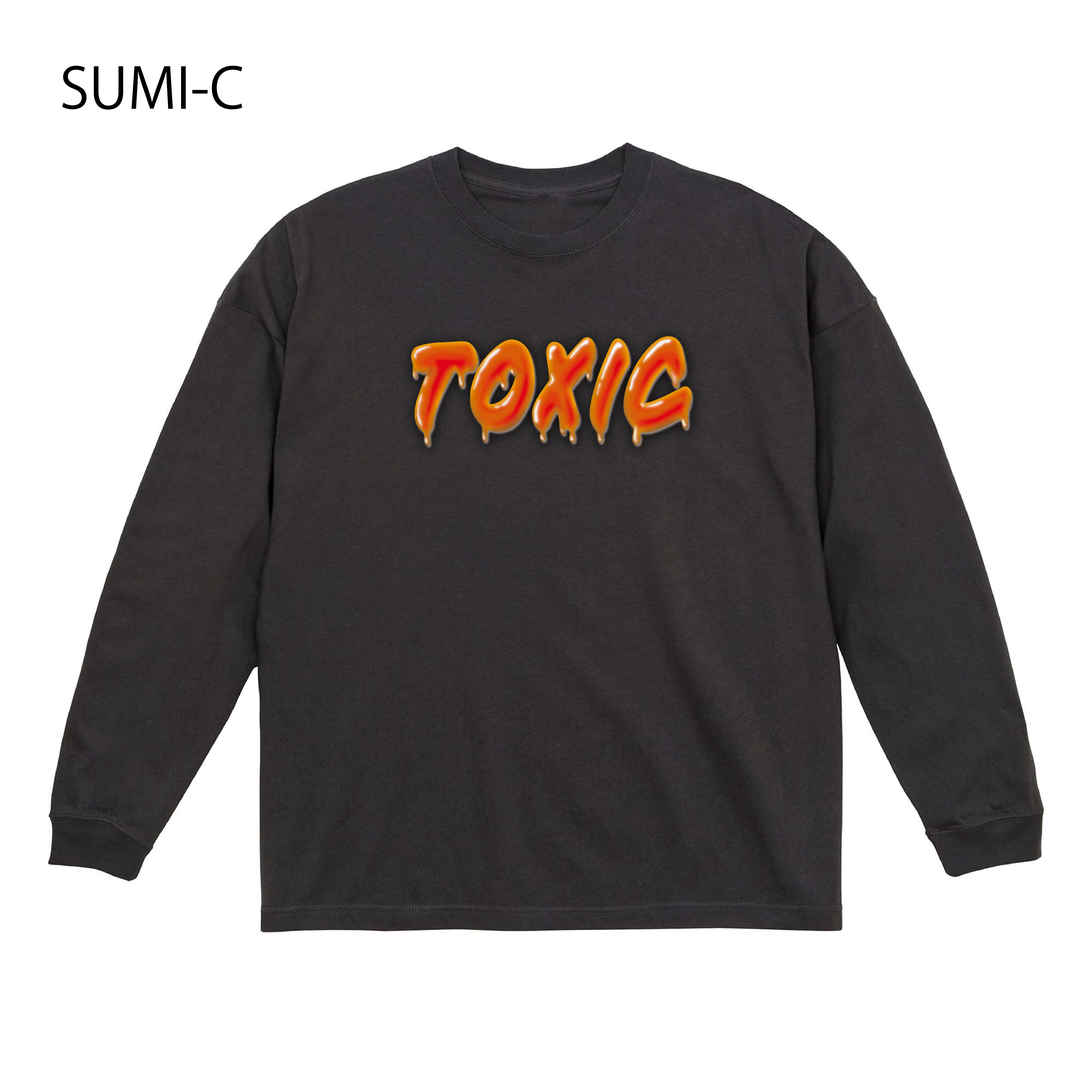 ・「TOXIC」とマッチした毒々しいカラーリングのロゴが映えるプリントデザイン