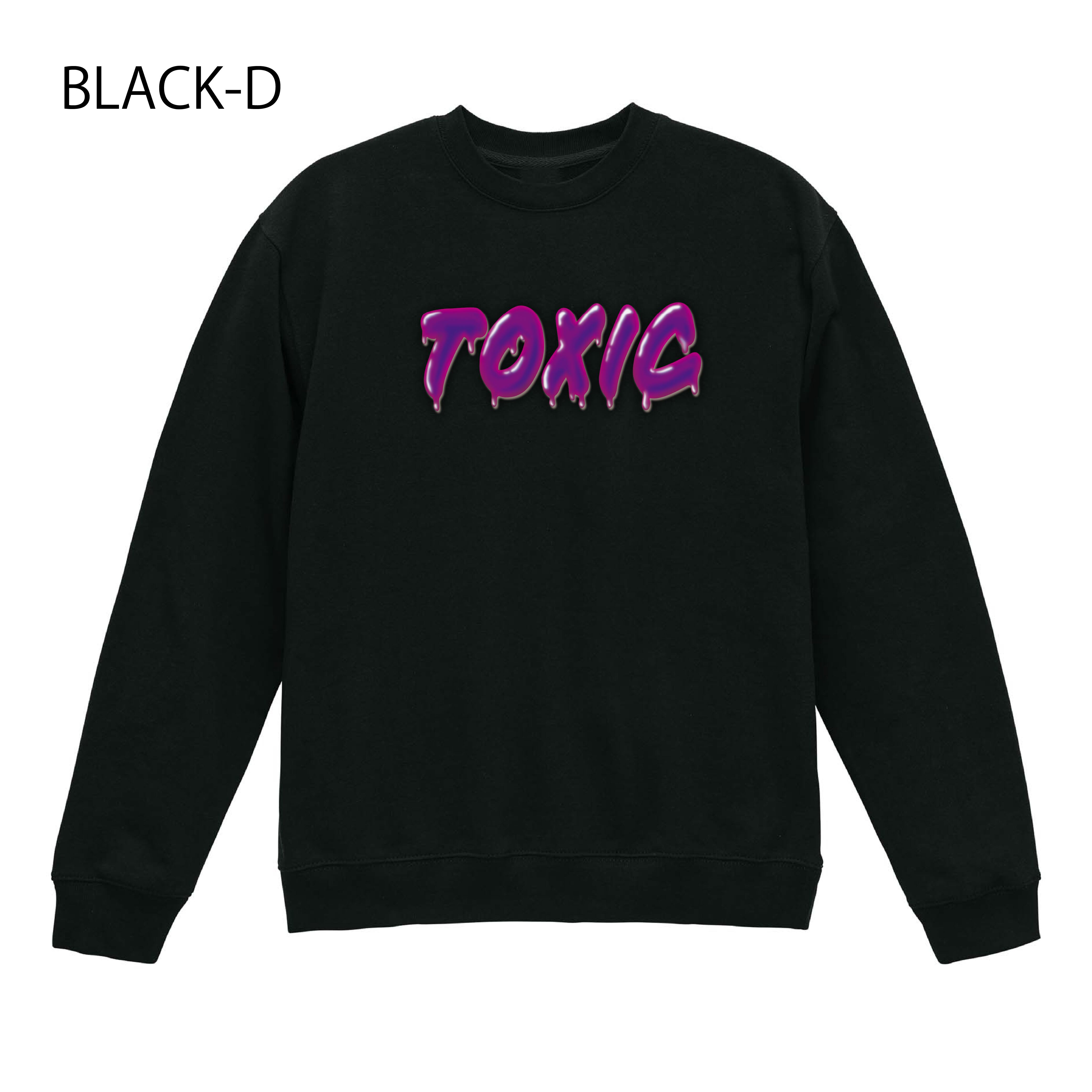 ・「TOXIC」とマッチした毒々しいカラーリングのロゴが映えるプリントデザインのスエットトレーナー