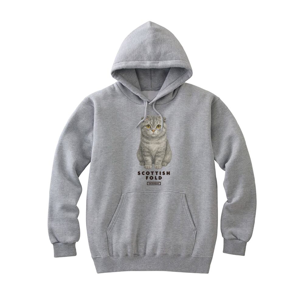 Moftique(モフティック) プルパーカー スウェット 裏毛 スコティッシュフォールド キャット ペット アニマル プリント トップス メンズ ユニセックス