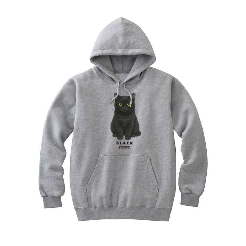 Moftique(モフティック) プルパーカー スウェット 裏毛 黒猫 キャット ペット アニマル プリント トップス メンズ ユニセックス