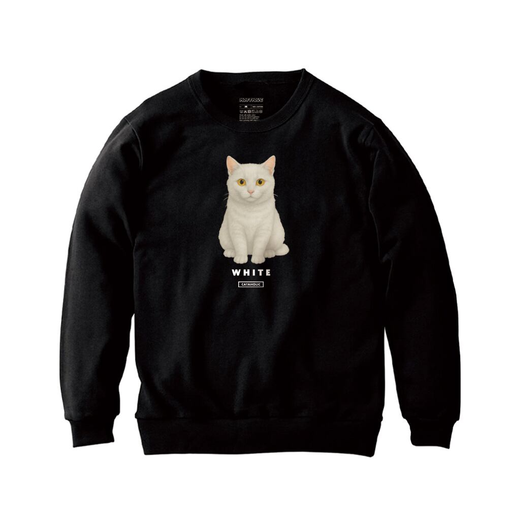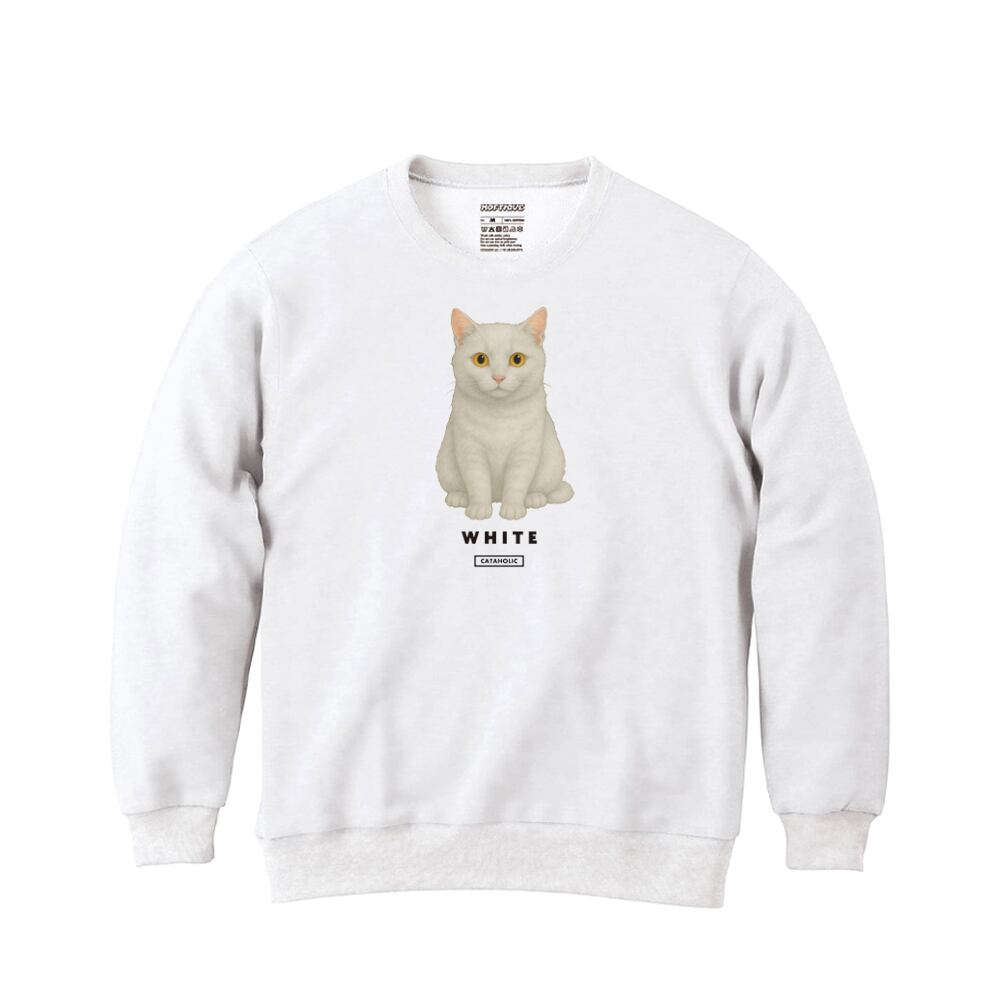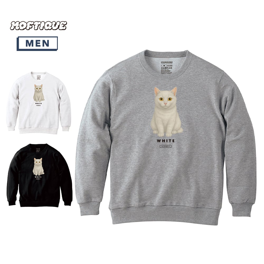 Moftique(モフティック) トレーナー スウェット 裏毛 白猫 キャット ペット アニマル プリント トップス メンズ ユニセックス