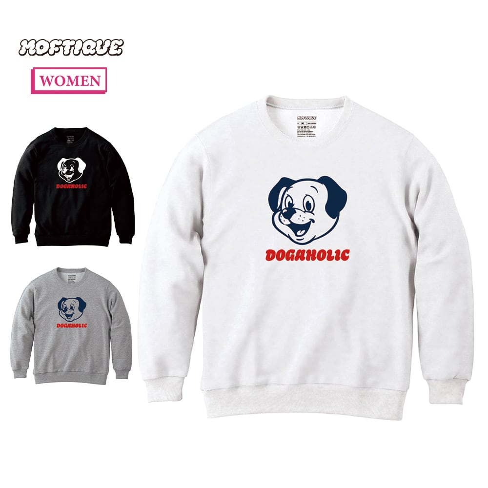 Moftique(モフティック) トレーナー スウェット 裏毛 ドッグイラスト アニマル プリント トップス レディース ユニセックス