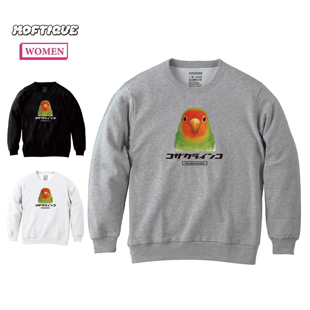 Moftique(モフティック) トレーナー スウェット 裏毛 コザクラインコ 鳥 ペット アニマル プリント トップス レディース ユニセックス
