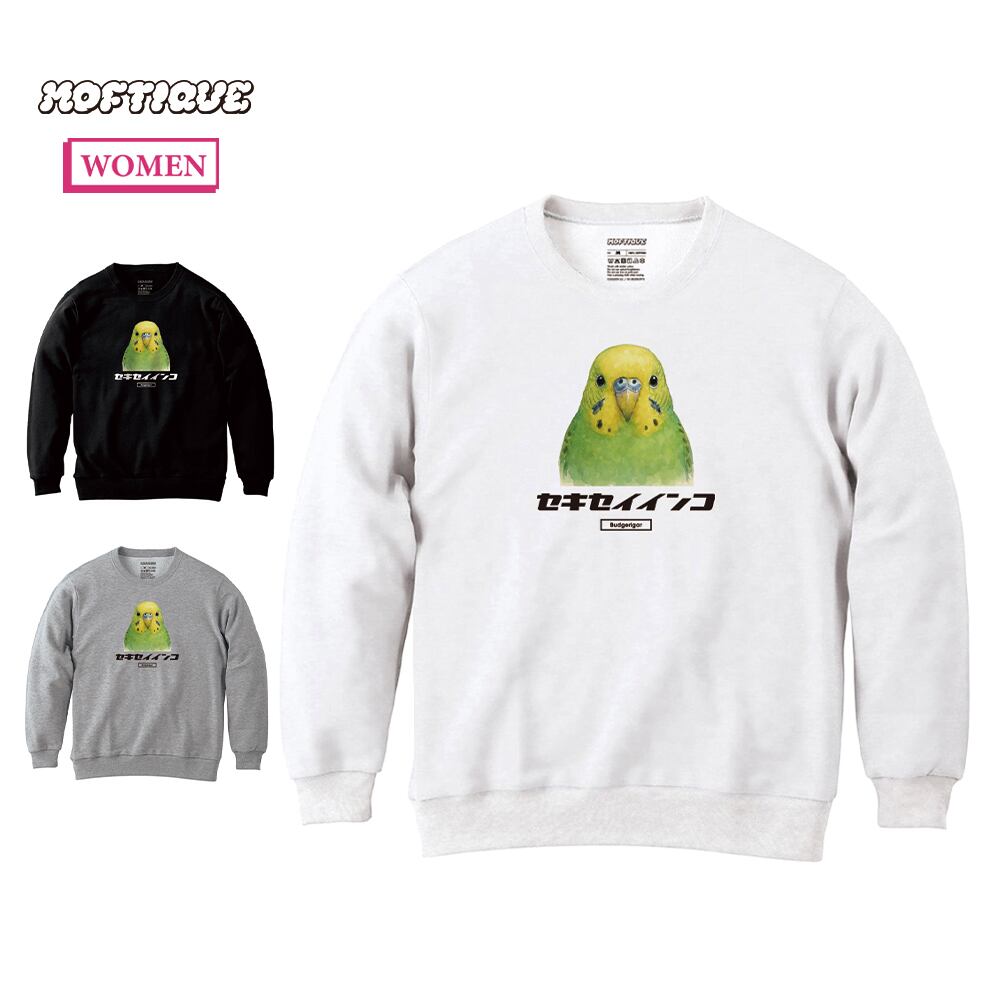Moftique(モフティック) トレーナー スウェット 裏毛 セキセイインコ 鳥 ペット アニマル プリント トップス レディース ユニセックス