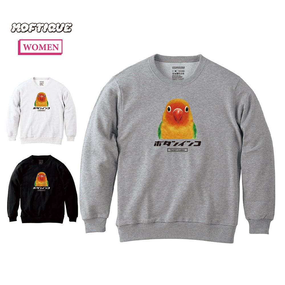 Moftique(モフティック) トレーナー スウェット 裏毛 コザクラインコ 鳥 ペット アニマル プリント トップス レディース ユニセックス