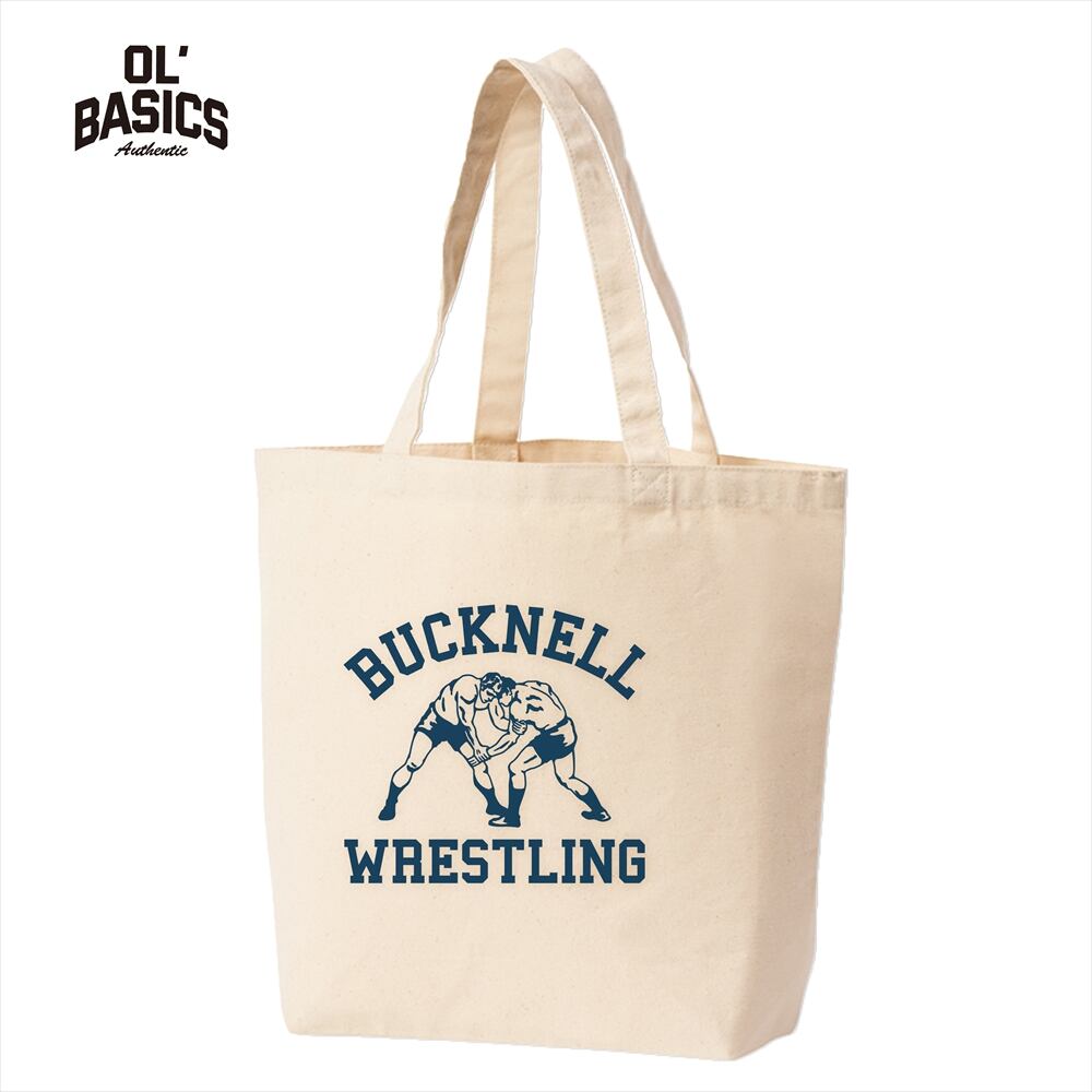 Ol' Basics(オール・ベーシックス) トートバッグ キャンバス レスリングイラスト カレッジロゴ プリント 鞄 BAG アメカジ メンズ レディース ユニセックス SMサイズ