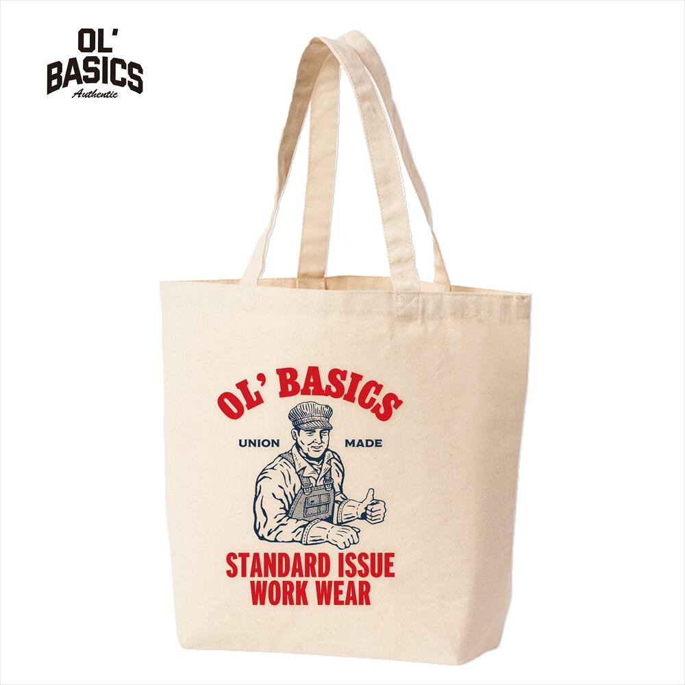 Ol' Basics(オール・ベーシックス) トートバッグ キャンバス ワーカーイラスト ロゴ プリント 鞄 BAG アメカジ メンズ レディース ユニセックス Lサイズ