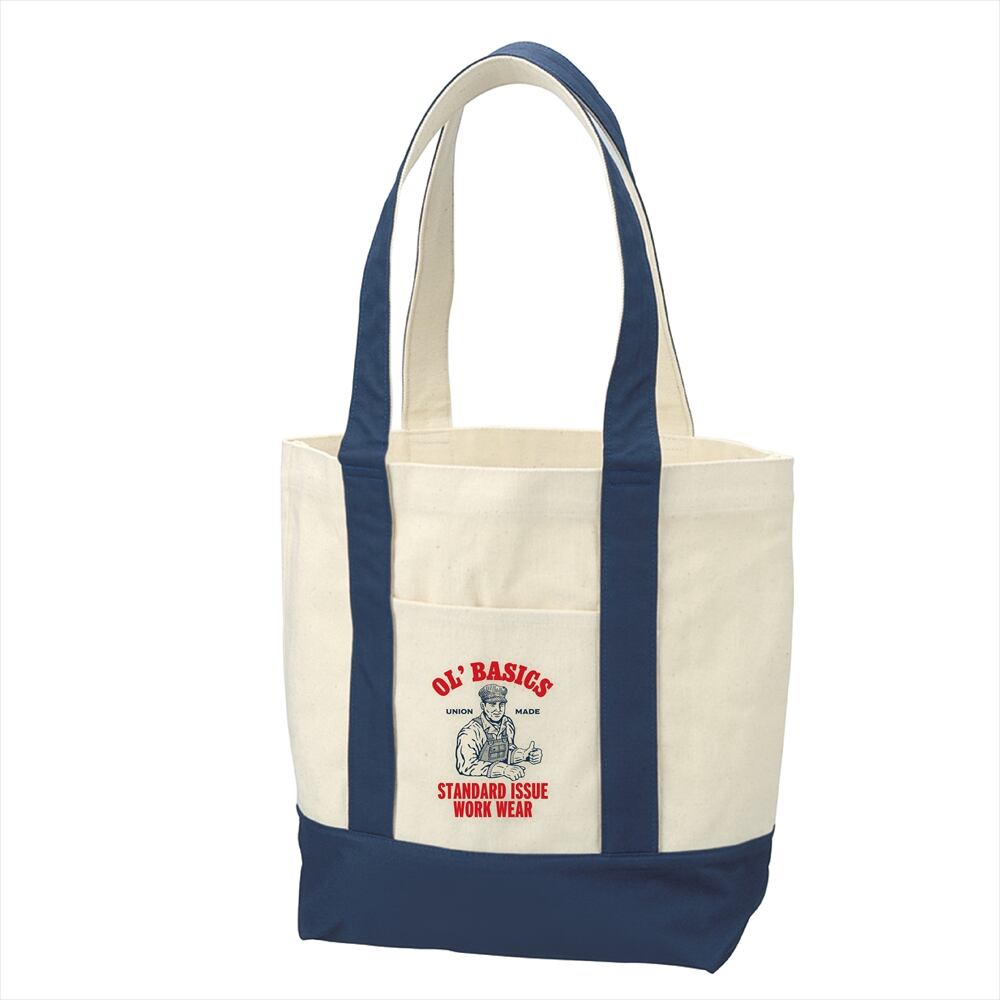 Ol' Basics(オール・ベーシックス) バイカラートートバッグ キャンバス ワーカーイラスト ロゴ プリント 鞄 BAG アメカジ メンズ レディース ユニセックス