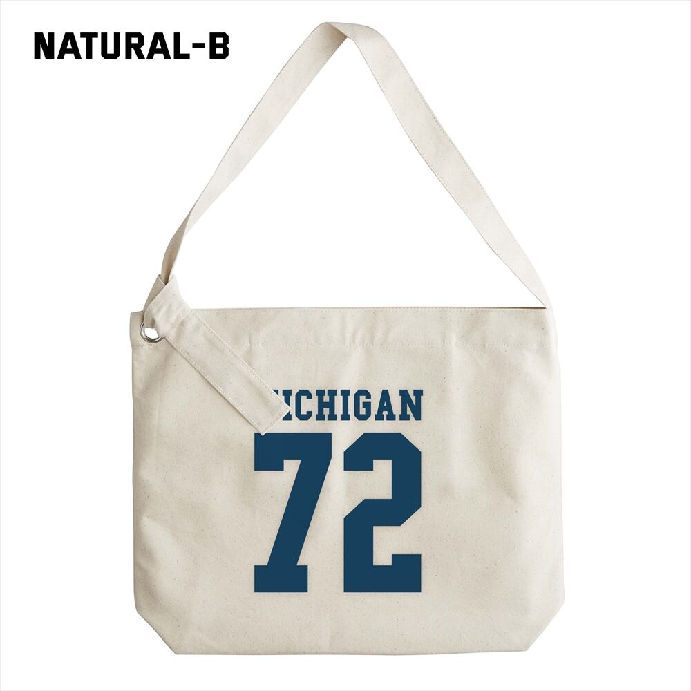 ザラっとした生地感とアメカジライクなプリントがマッチしたキャンバスショルダーバッグ。