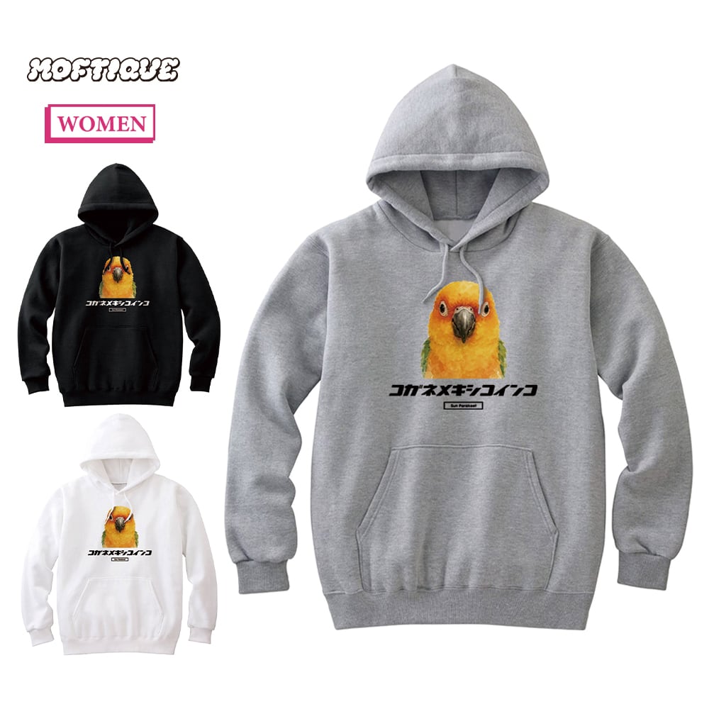 Moftique(モフティック) プルパーカー スウェット 裏毛 コガネメキシコインコ 鳥 アニマル プリント トップス レディース ユニセックス