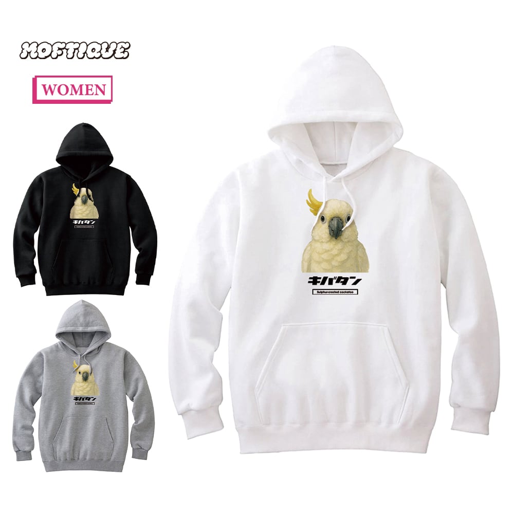 Moftique(モフティック) プルパーカー スウェット 裏毛 キバタン 鳥 アニマル プリント トップス レディース ユニセックス