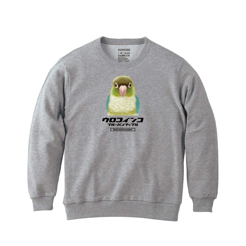 愛らしいウロコインコ ブルーパイナップルが目を惹くアニマルプリント スエット トレーナー。