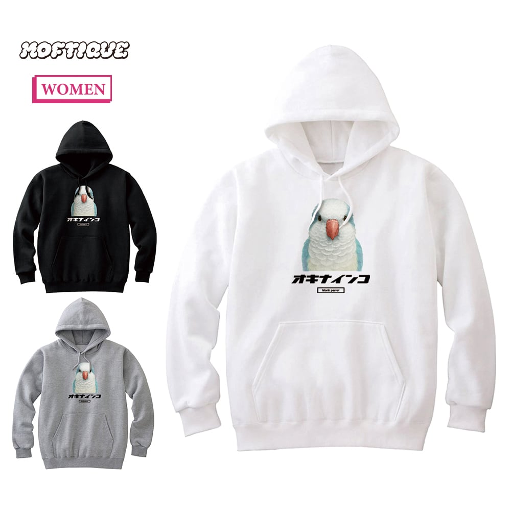 Moftique(モフティック) プルパーカー スウェット 裏毛 オキナインコ 鳥 アニマル プリント トップス レディース ユニセックス