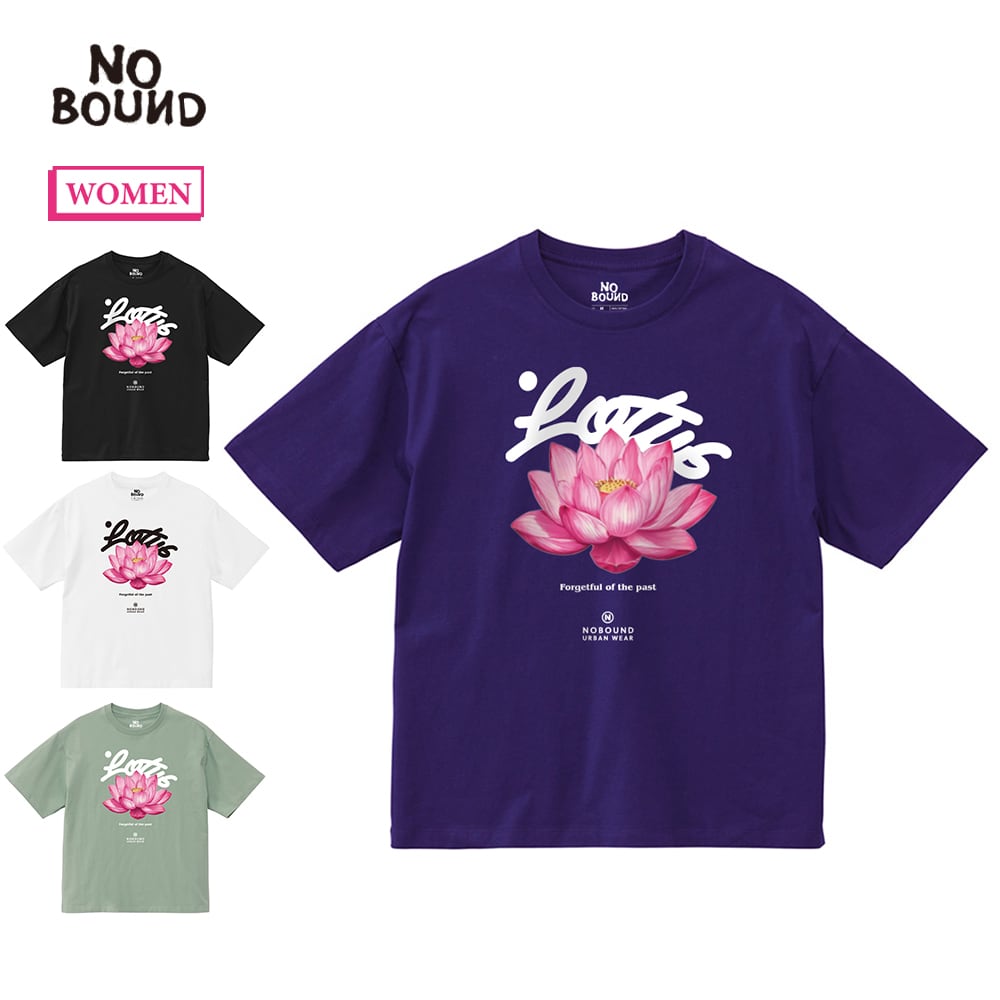 NOBOUND(ノーバウンド) 半袖Tシャツ 蓮 花 フラワー柄 プリント ボックスシルエット トップス カットソー レディース ユニセックス ストリート