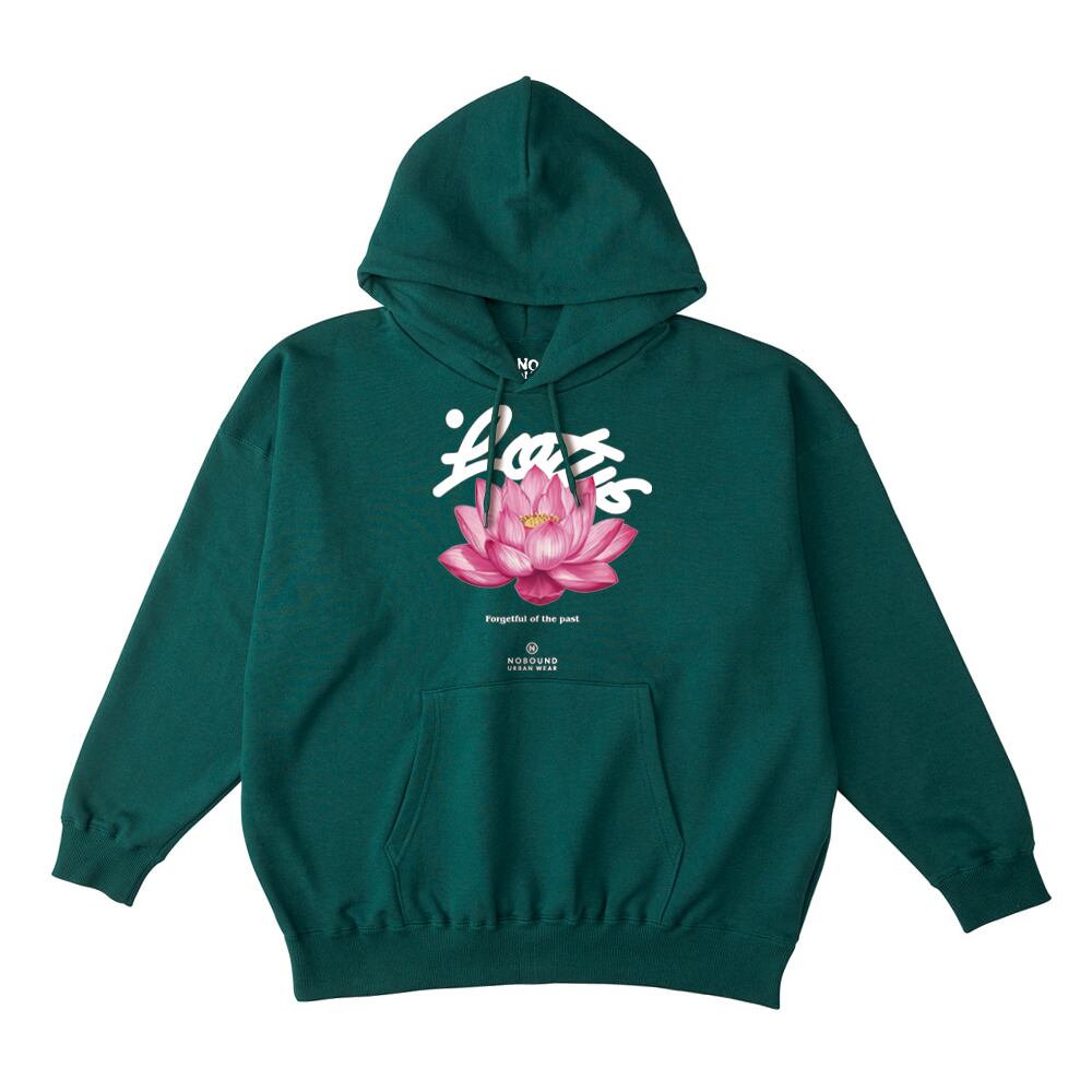 ・蓮の花が映えるオーバーサイズのスエットパーカー