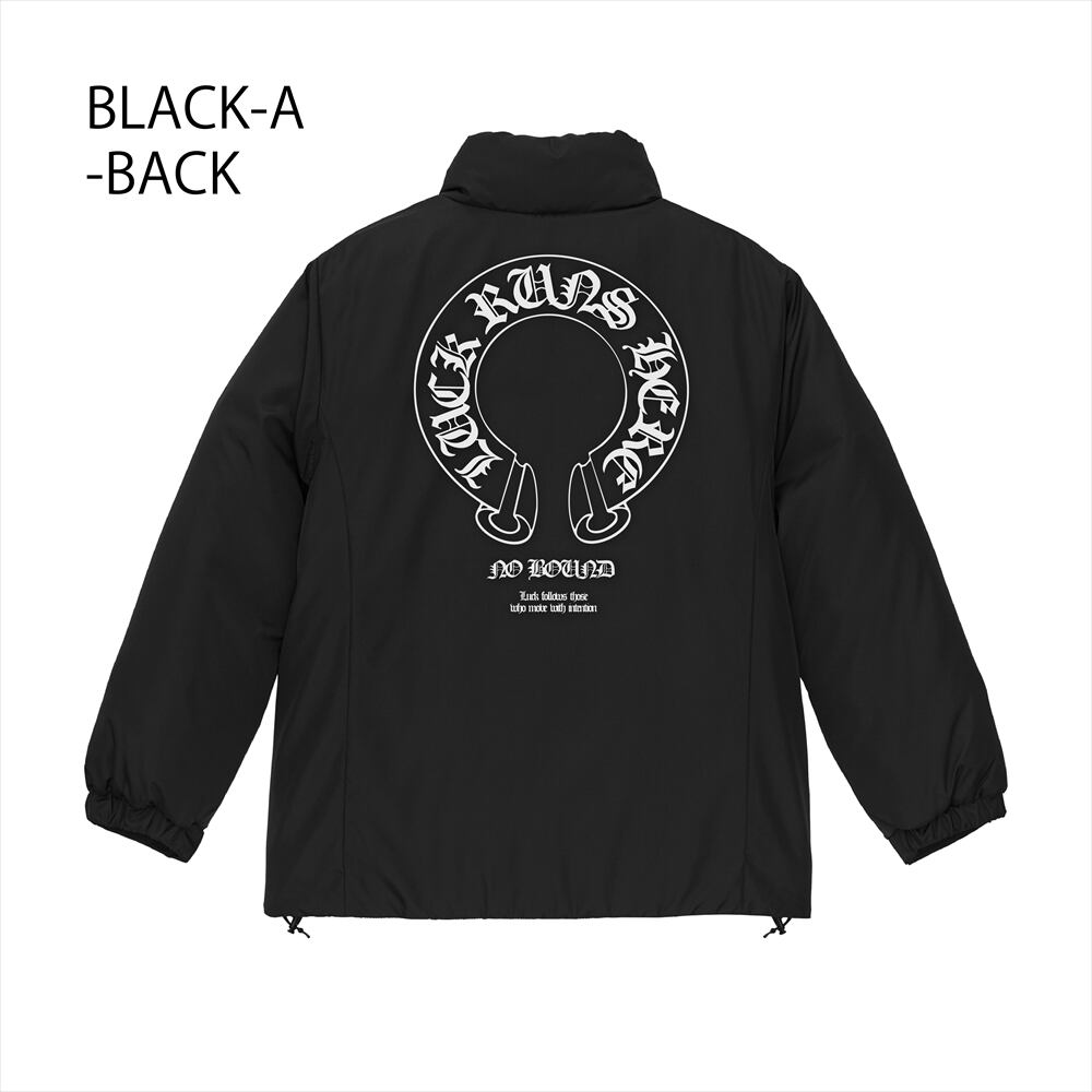 NOBOUND(ノーバウンド) フェイクダウンジャケット 中綿 ホースシュー オールドイングリッシュロゴ ワンポイント プリント バックプリント シームレス 中綿ジャケット パデッドジャケット アウター ストリート メンズ レディース ユニセックス