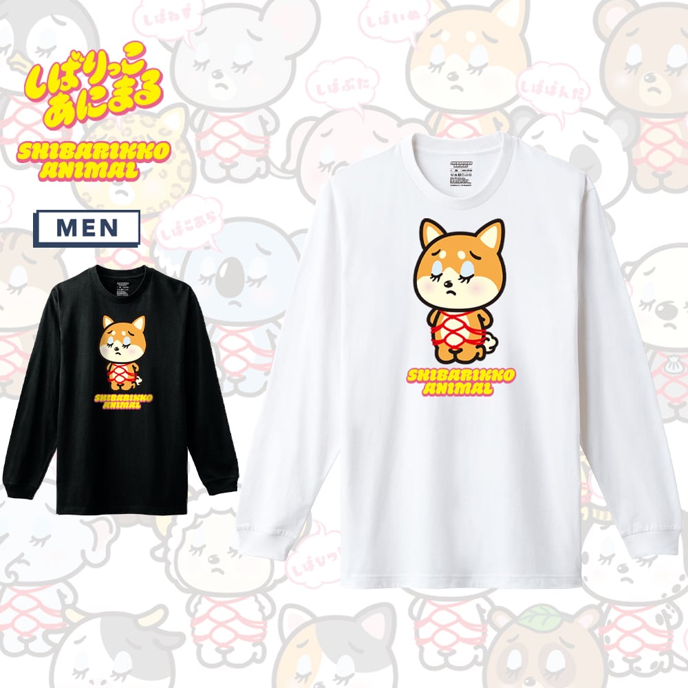しばりっこあにまる 長袖Tシャツ しばけん アニマル イラスト プリント 5.6oz クルーネック 袖リブ Tシャツ 長袖 ロングTシャツ ロンT カットソー トップス メンズ ユニセックス 春 秋