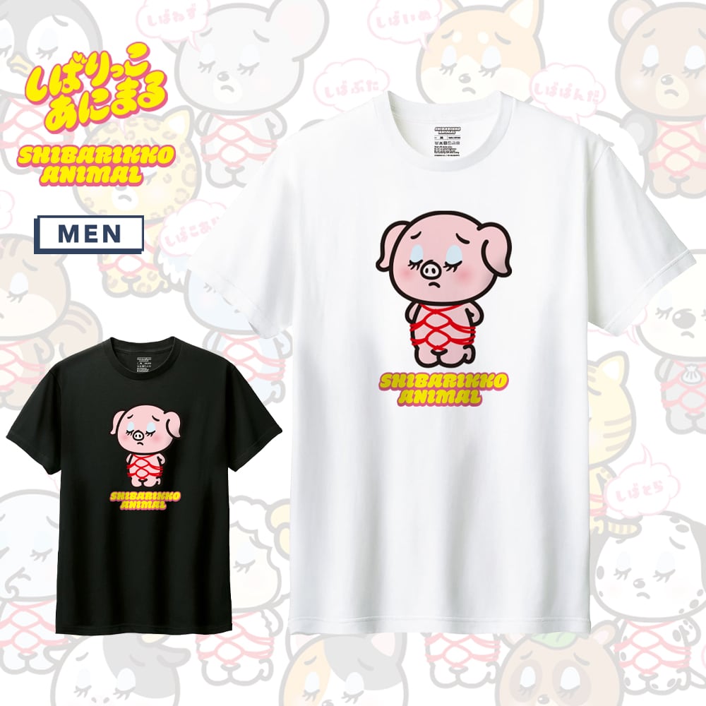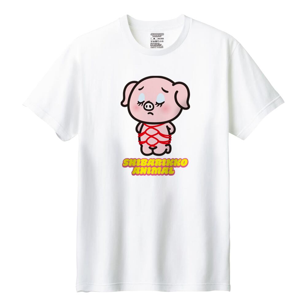しばりっこあにまる 半袖Tシャツ しばぶた アニマル イラスト プリント 5.6oz クルーネック Tシャツ 半袖 カットソー トップス メンズ ユニセックス 夏