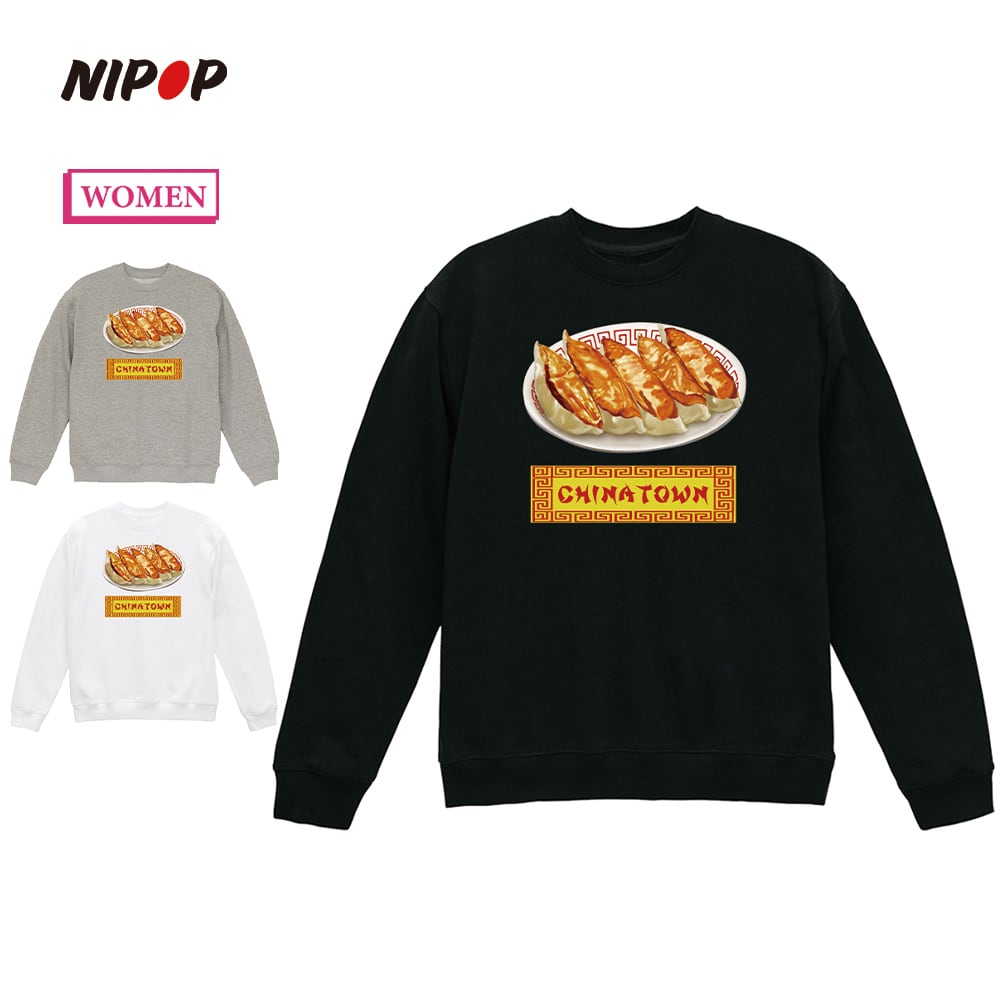 NIPOP(ニポップ) トレーナー レディース スウェット 餃子 中華料理 イラスト ロゴ プリント スウェットシャツ スエット プルオーバー トップス インバウンド お土産 ユニセックス