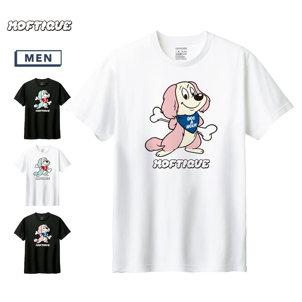 Moftique(モフティック) 半袖Tシャツ メンズ アニマル 犬 ドッグ イラスト ロゴ プリント Tシャツ 半袖 カットソー トップス レディース ユニセックス