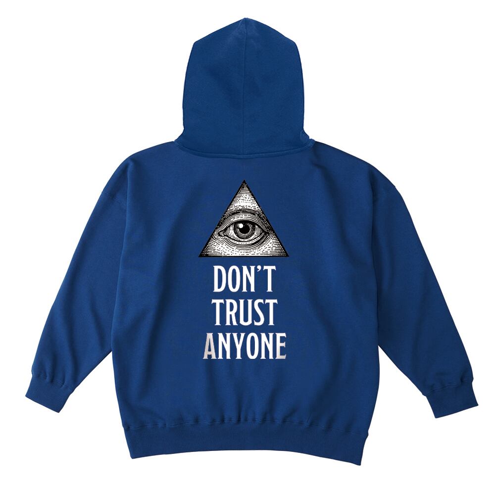 ・プロビデンスの目のイラストとメッセージロゴが映えるオーバーサイズのスエットパーカー