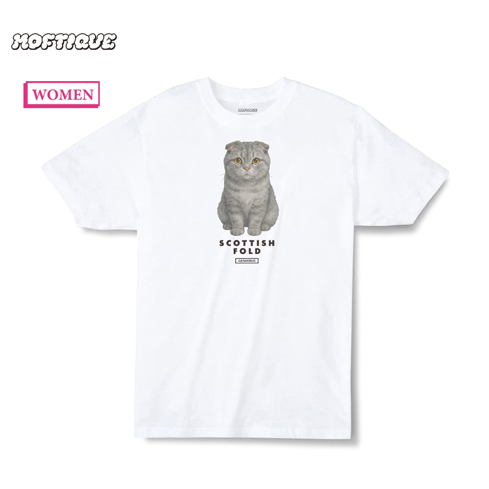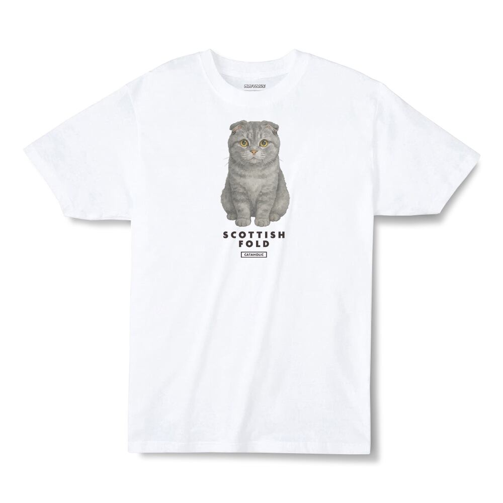 Moftique(モフティック) エントリーモデル 半袖Tシャツ アニマル スコティッシュフォールド 猫 キャット ペット インクジェットプリント 褪せ感 4.0オンス 薄手 トップス カットソー 夏 カジュアル レディース ユニセックス