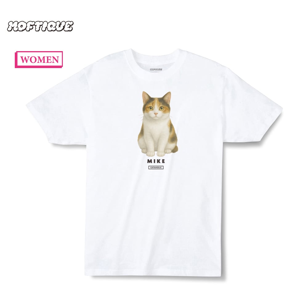 Moftique(モフティック) エントリーモデル 半袖Tシャツ アニマル 三毛猫 キャット ペット インクジェットプリント 褪せ感 4.0オンス 薄手 トップス カットソー 夏 カジュアル レディース ユニセックス